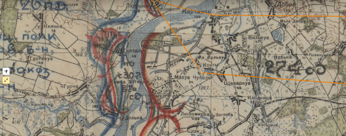 Здравствуйте Уважаемые читатели! Сегодня я хочу привести очень интересный эпизод боёв на Висле, как правило, такие эпизоды остаются в тени и редко находят отображение в публикациях. Итак, 29 июля 1944 года части 274-й сд участвовали в форсировании Вислы, как я упомянул ранее. Утром на западный берег отправляется первый эшелон советской пехоты, а с ним и 1-я группа химиков, у которых, к слову, были только дымовые шашки и гранаты, ни машин АРС, ни дымовых сифонов тогда не было, кстати, дымы выставляли и наши штурмовики ИЛ-2, но не в данном случае. Вторая группа химиков занимает свои позиции на острове у н. п. Кемпа Хотела, карту привожу ниже. А третья остаётся на восточном берегу. То есть при смене направления ветра можно было менять места дымопускания и скрывать советские подразделения, переправляющиеся через реку и занимающие позиции на плацдарме. Уже к вечеру противник решил совершить налёт и разбомбить наши переправы через Вислу, поэтому химики на острове проворачивают хитрый трюк. Положив дымовые шашки на ящики, они отправляют их вниз по течению, укутывая русло реки пеленой густого дыма, а вместе с руслом и советские переправы.