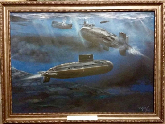 «6 сентября вышли в Атлантику. Ведем поиск авианесущей многоцелевой группы (АМГ) противника во главе с авианосцем «Америка». 16 сентября в Норвежском море собственными средствами обнаружили АМГ. Осуществляем слежение за авианосцем «Америка» в пределах назначенного района. Выполнил по авианосцу 11 учебных торпедных атак».