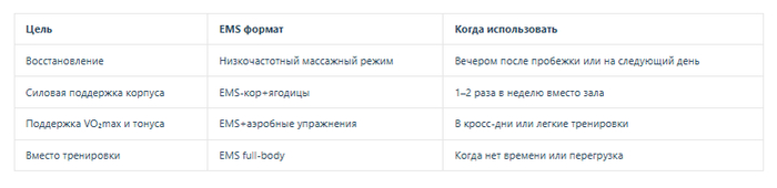 🔲 Встроите 1–2 EMS-сессии в неделю (восстановление, сила, тонизация)