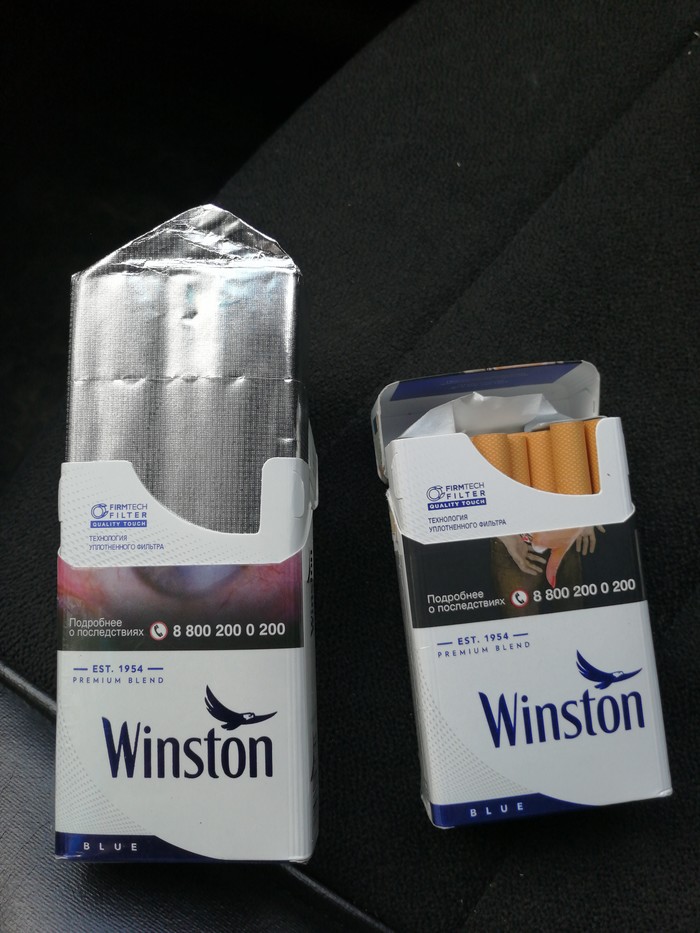 Купил пачку парламента аква блю в табачном магазине возле станции метро Кантемировская. Дома, при открытии, сразу заметил что это подделка, целофан не такой и открывалась плохо. Сравним пачку сигарет, купленную в табачном киоске (справа), с пачкой купленной в винлабе (слева), что мы видим :
