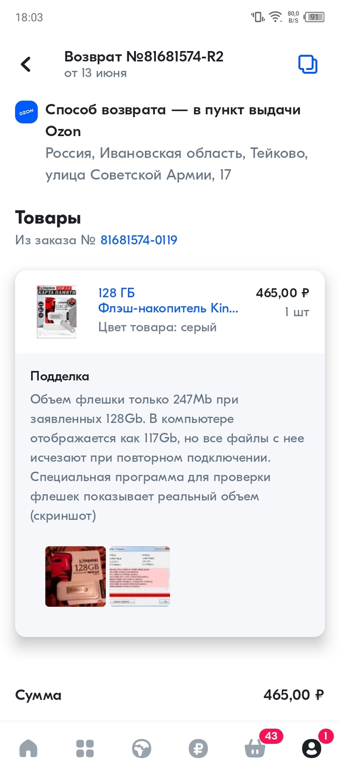 На Ozon и Яндекс.Маркет возвраты оформляются достаточно просто, но срок у вас – семь дней с момента покупки. На AliExpress все еще интереснее – открывается спор, в котором дополнительно ставится галочка, что вы не хотите возвращать поддельный товар и требуете возврата полной уплаченной суммы. В итоге фейковая флэшка остается у вас бонусом. Но придется предоставить больше доказательств, например, в самом начале хорошо бы прогнать тест H2testw, который покажет, что большинство секторов на флэшке «битые». И тут учтите, что время проверки фейковой флэшки может запросто занять пару суток, поскольку скорости чтения/записи у них в районе 10 МБ/с.