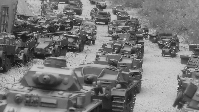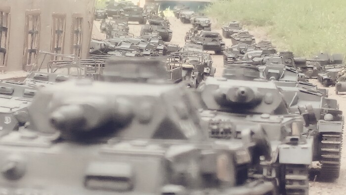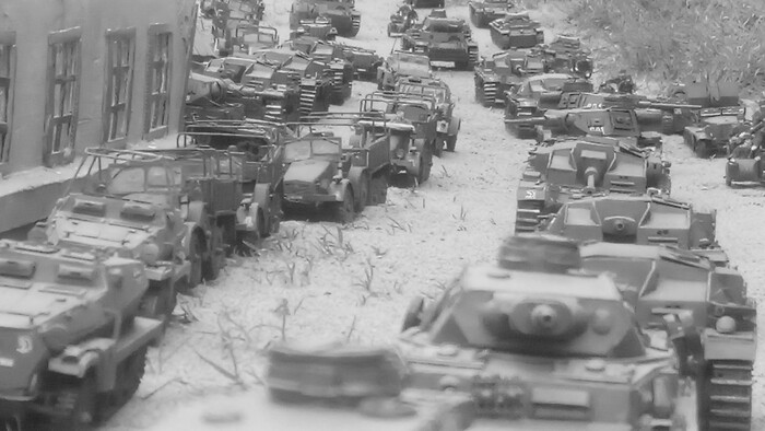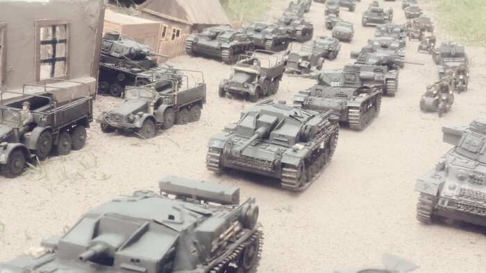 Танки Pz III , Pz IV, Pz II, бронетранспортеры Sd. Kfz 251, 250, 247, тягачи Sd. Kfz 10, автомобили Krup Kfz.70 , Horh. Мотоциклы BMW r 12, штурмовые орудия Sturmgeschütz III, Sturmgeschütz 40 Ausf 8.