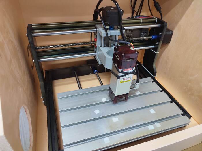 История началась лет 5 назад, когда я на алике решил заказать себе станочек cnc3018 и на какой-то из распродаж урвал-таки себе по очень вкусной цене 2в1 - гравер и лазер. Подождал, подождал, получил, собрал. Гравер сразу отложил в сторону - шумно, пыльно, и в 3д я сам не очень. Запустил лазер на лоджии и понял что тоже какой-то попадос - дыма столько, что хоть топор вешай. Нужна вытяжка. чтобы сделать вытяжку - нужно менять окно на лоджии, а к этому я был совсем не готов, и отложил станочек до лучших времен.