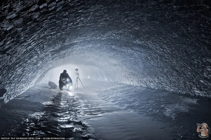 Этот участок подземной реки похож на нашу московскую речку «Неглинку», но здешний коллектор более ухоженный.
