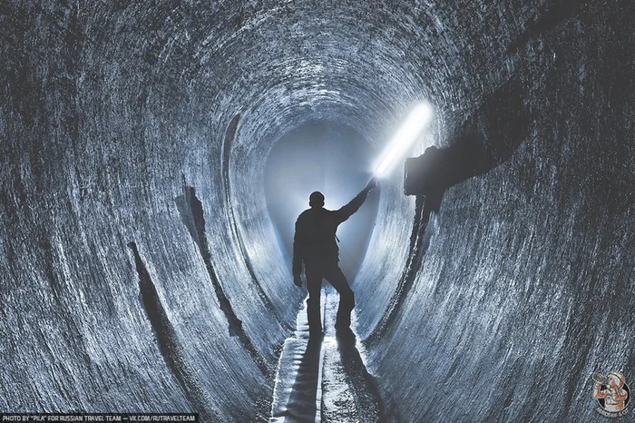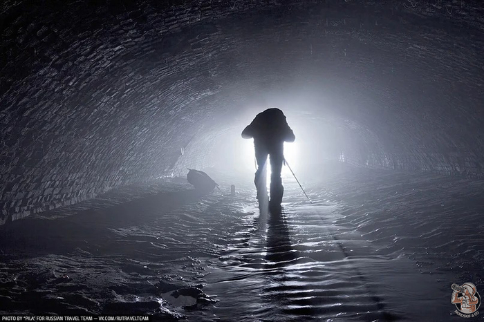 3. Третья часть русла самая красивая: русло реки протекает в тоннеле арочного профиля. (длина этого участка почти полтора километра, а пропускная способность три тысячи вёдер воды в секунду)