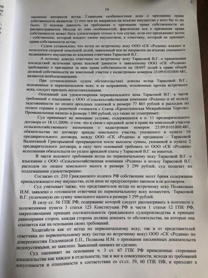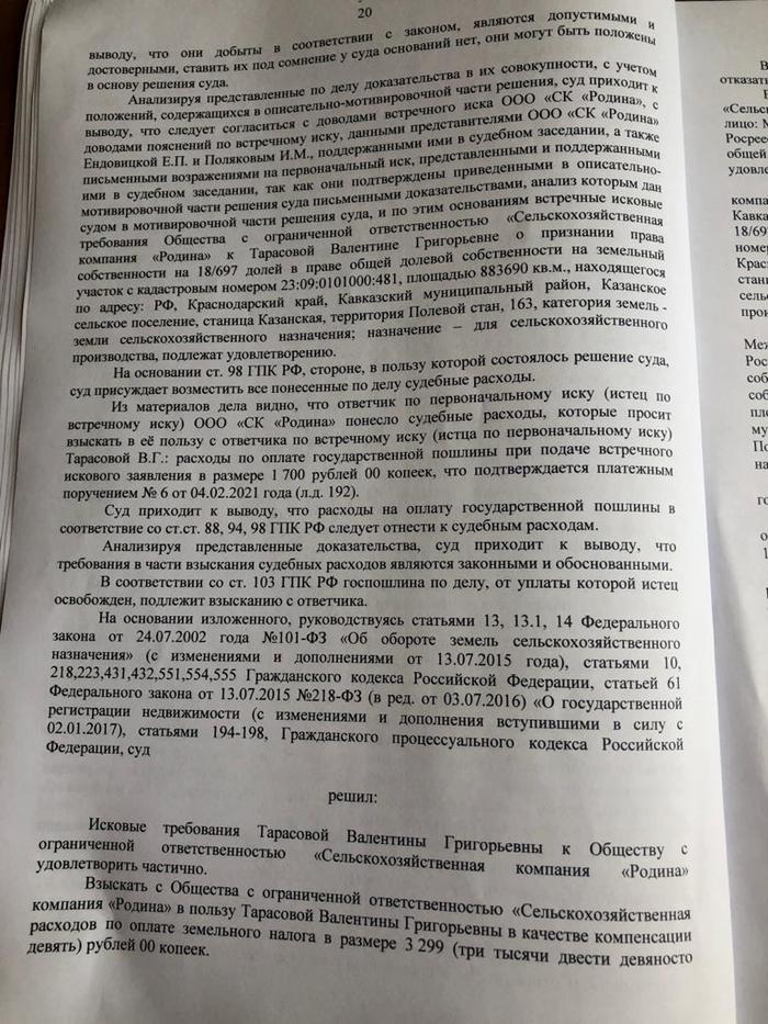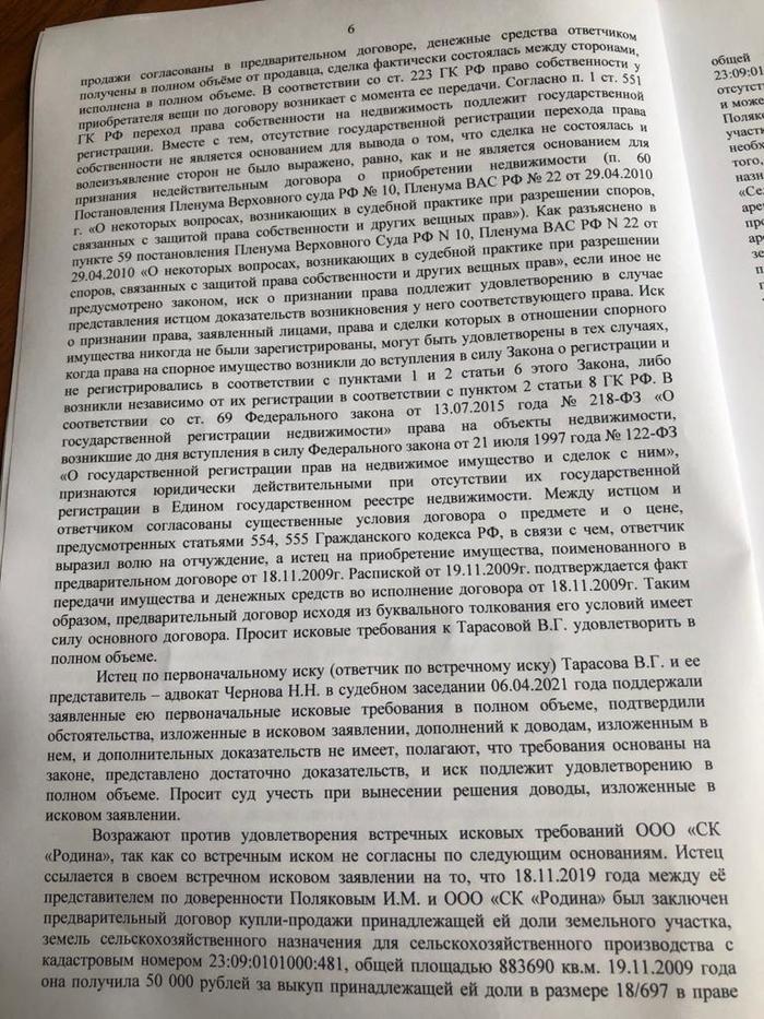 Публикую это очень своеобразное решение суда по теме об "отжатии сельхоз.земель у бабушек". Очень длинный мыльный текст решения, с целью замусолить бабушке мозг - особо можно не вникать - бла, бла, бла... и в конце хирясть по морде. Судью явно мотивировала сторона побогаче в принятии решения в свою пользу...