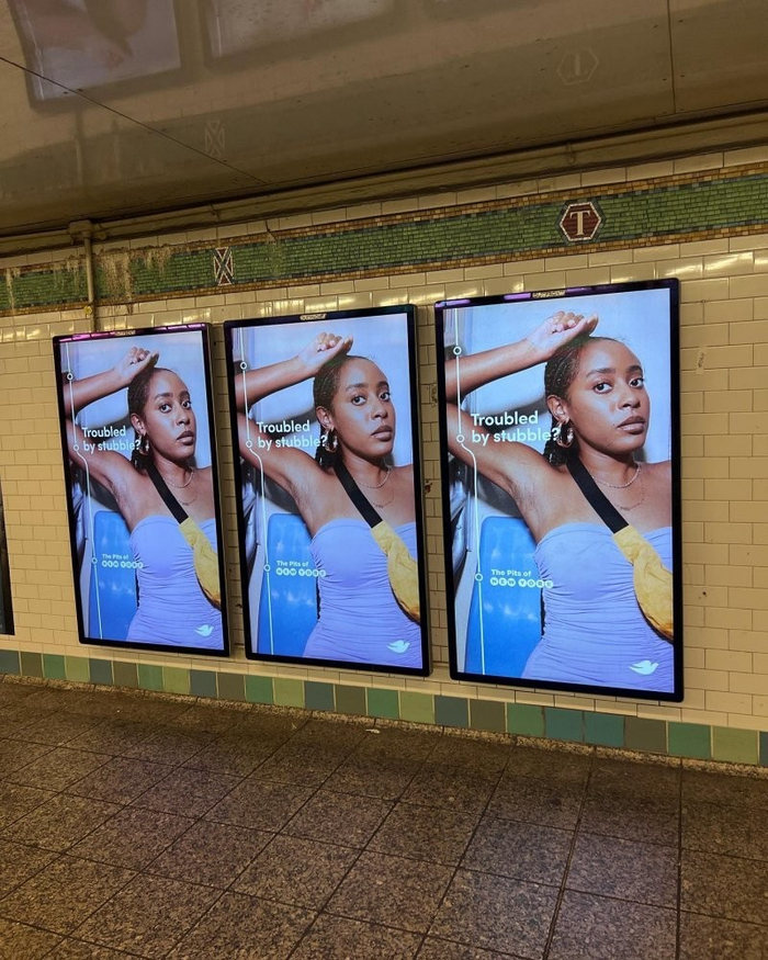 Для пущего эффекта в метро Нью-Йорка разместили баннеры с местными красотками и анонсировали на 7 сентября интерактивную презентацию, в рамках которой всем желающим будет выдан подарочный набор — дезодорант и талончик на одну бесплатную поездку в метро.
