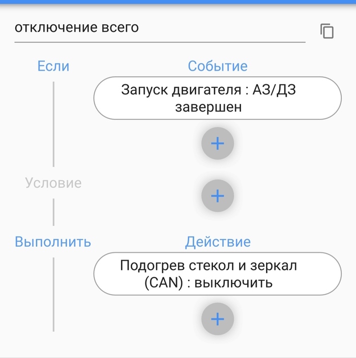 Логику для отключения я не добавлял, поскольку один импульс выключит руль и убавит сиденья, а второй импульс выключит сидения, но включит обратно руль. Нужно было тянуть два доп. канала, что бы управлять ими раздельно. Но так как после завершения автозапуска кнопки остаются активными, то в этом нет острой необходимости, и решено было оставить только включение.