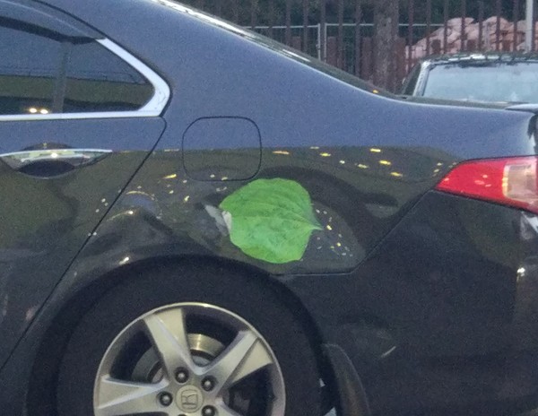 Хозяин, видать мужик с юмором, прилепил подорожник.