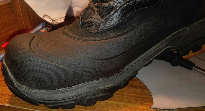 Хотя при таких повреждениях уже нужно думать в первую очередь не о сухости ног, а о том, чтобы передняя часть не оторвалась вообще - вместе с куском верха.