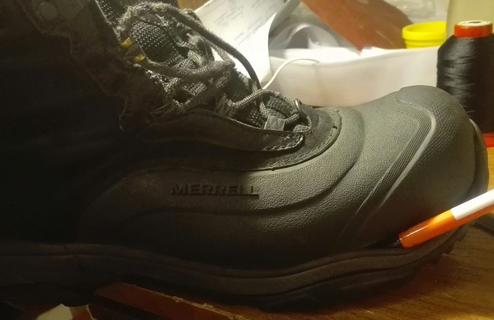 Треснула подошва давно. А до мастерской добрались только сейчас. Видимо, стали промокать ноги (до определённого момента на некоторых подошвах это даже не заметно до первой лужи).