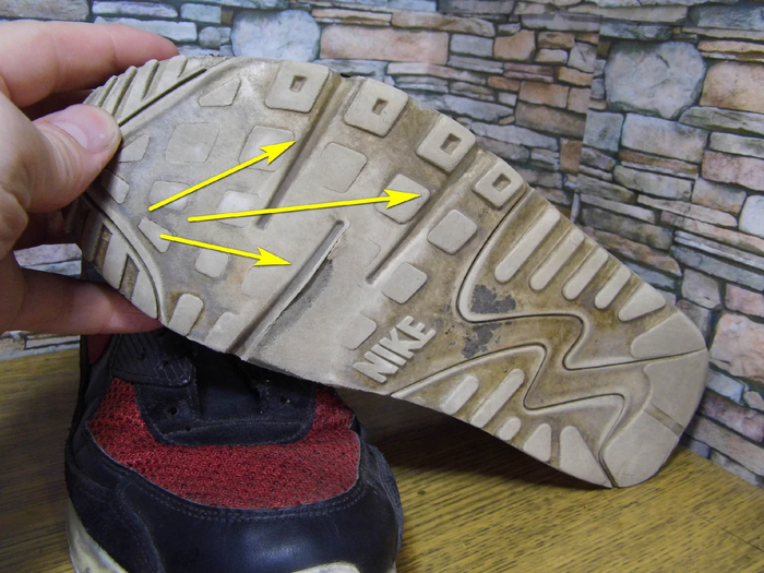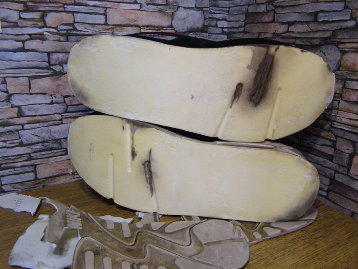 ... так и перелом и деградация подошвы из-за этого износа. То есть износоустойчивый слой стал тоньше, и уже не справляется с нагрузками на изгибах стопы.