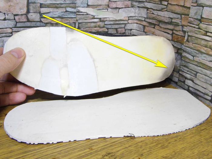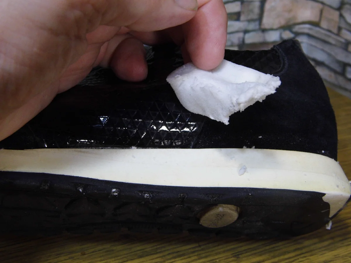 Также можно применить материал поплотнее и с более выраженным протектором. Здесь мы дополнительно очистили и обновили цвет белой подошвы.