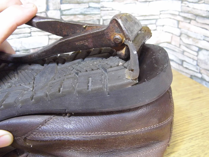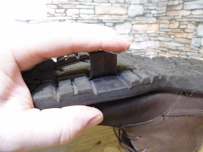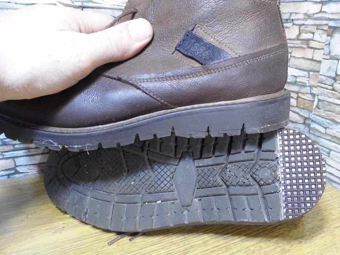 И пора уже что-то делать с подошвой. Скорость эскадры определяется самым медленным кораблём. Уровень воды в бочке определяется самой короткой клёпкой. Так и здесь: в этом месте подошва уже почти истёрлась. Дальше будет хуже, хотя остальная часть вполне нормальная.