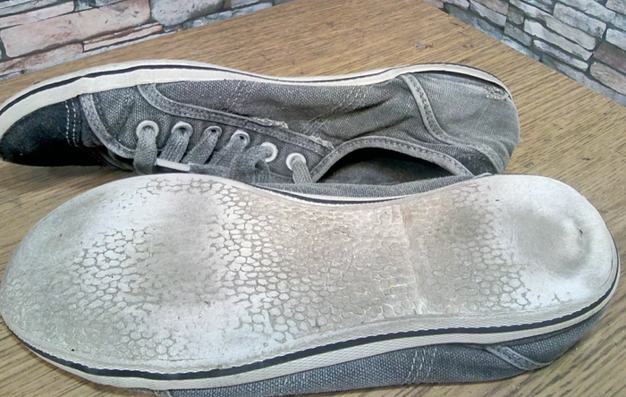 Вот, попался такой любопытный экземпляр. Кеды. С джинсовым верхом. Года два эксплуатации.