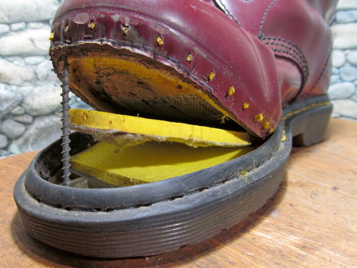 Попробуй поносить треккинговую обувь. Есть треккинговые кроссовки - лёгкие, прочные и, что важно, с подошвой, заточенной под жёсткую пересеченку,острые камни и прочий "не асфальт".