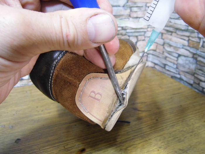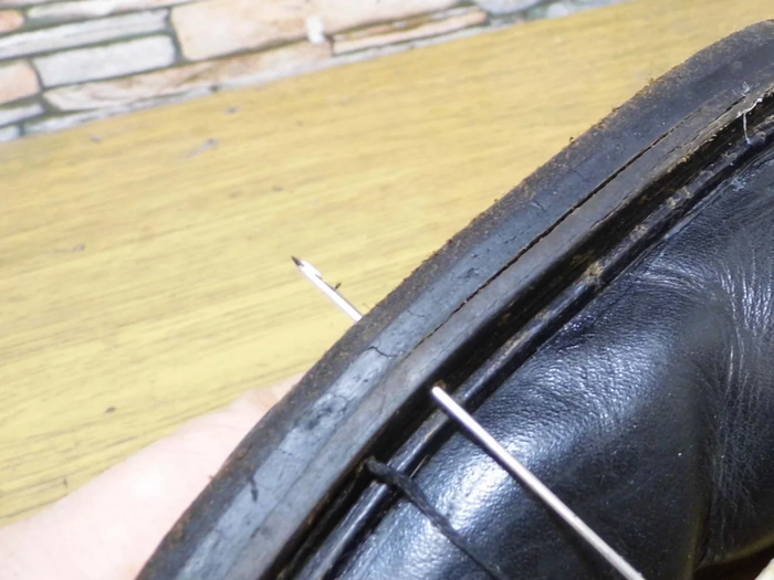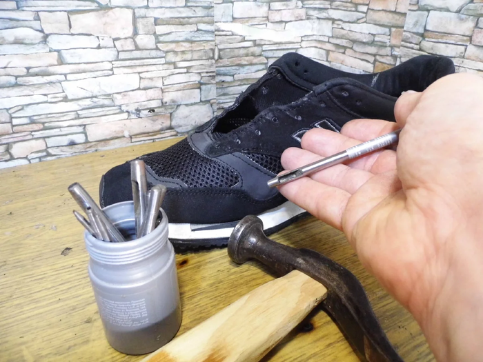 Также были заявлены набойки наверх на имеющиеся. Поэтому утопим шляпки гвоздей. Знающие люди могут догадаться, из чего сделан пробойник.