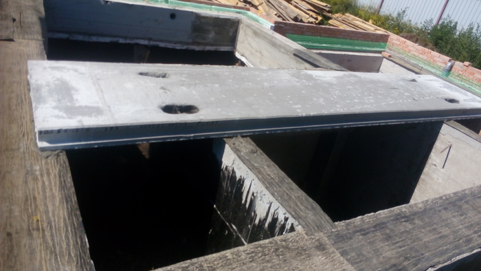 Погребок благополучно перекрыли плитами и замонолитили участок с отдельным лазом в яму.