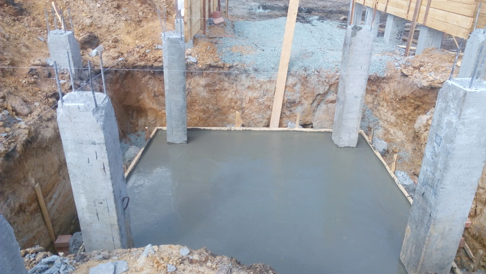 А дальше скидали в вырутую яму оголовки свай и выполнили полы.
