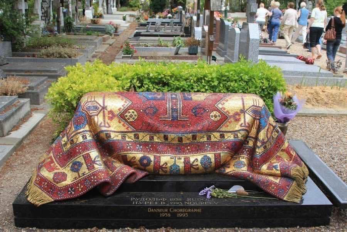 Рудольф Нуриев скончался в 1993 году и был похоронен на русском кладбище Сен-Женевьев де Буа под Парижем. Примерно тогда же один из ведущих художников Парижской Оперы Энцо Фриджерио, друг и коллега танцовщика, высказал идею оформления могилы с помощью восточного ковра. Нуриев коллекционировал старинные ковры и вообще древний текстиль разных стран, самые любимые ковры кочевали с ним по гастролям, вдохновляя на новые потрясающие танцы и представления.