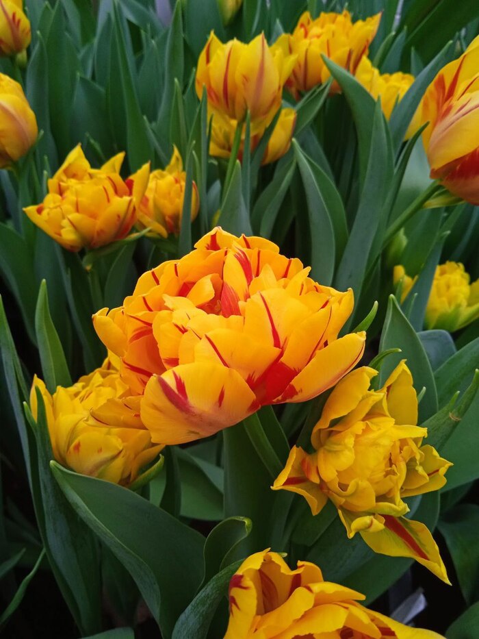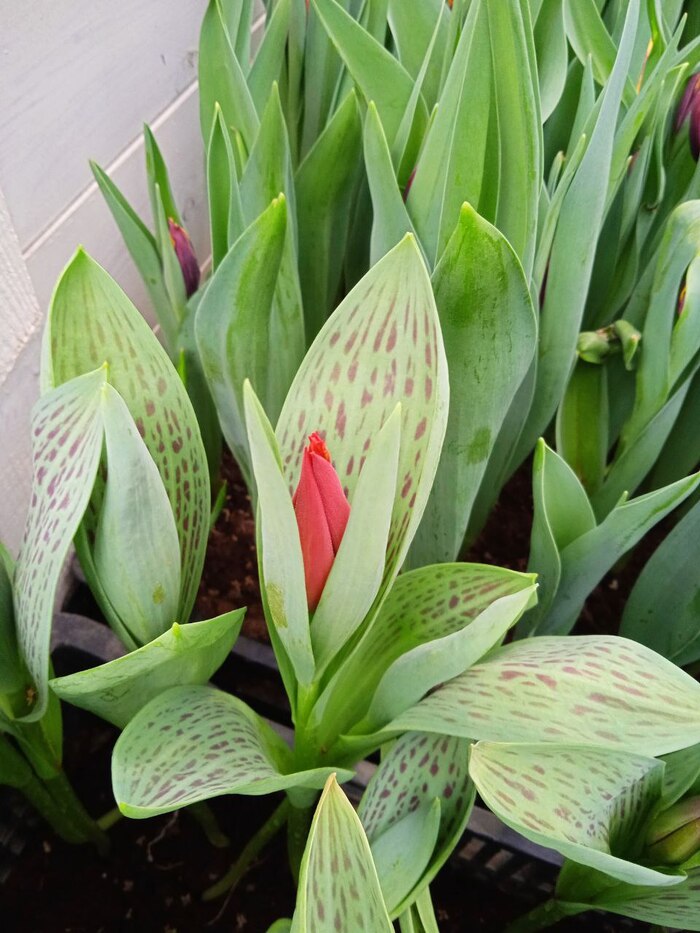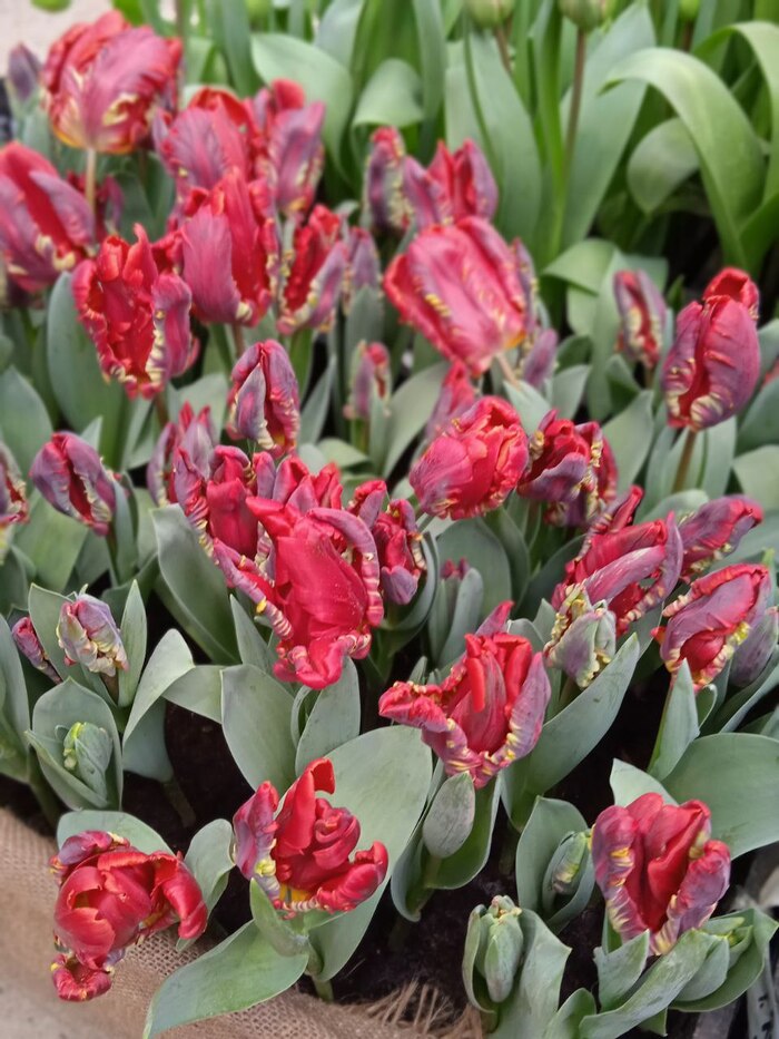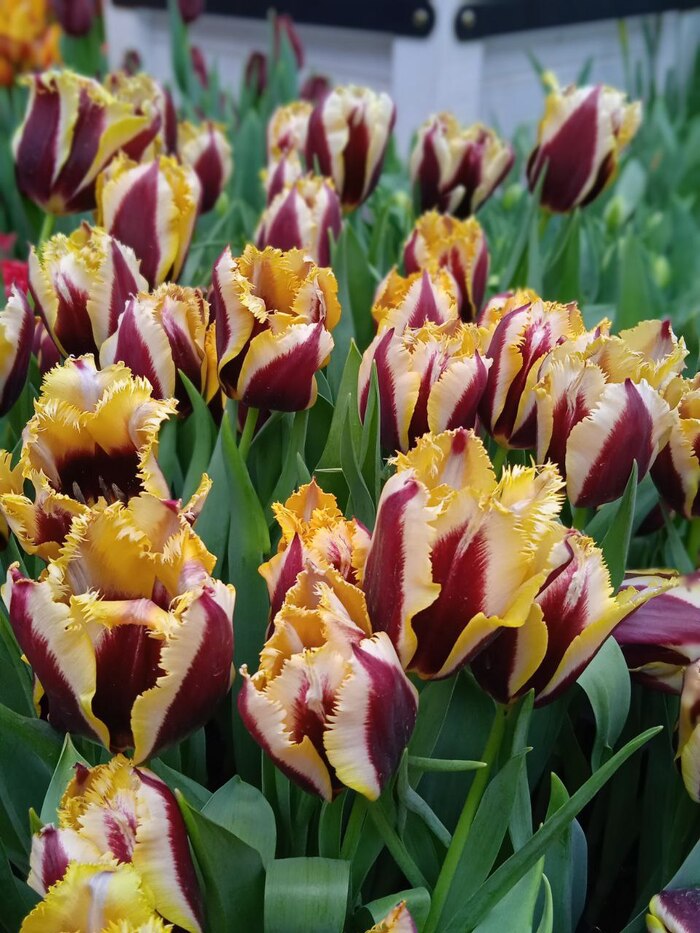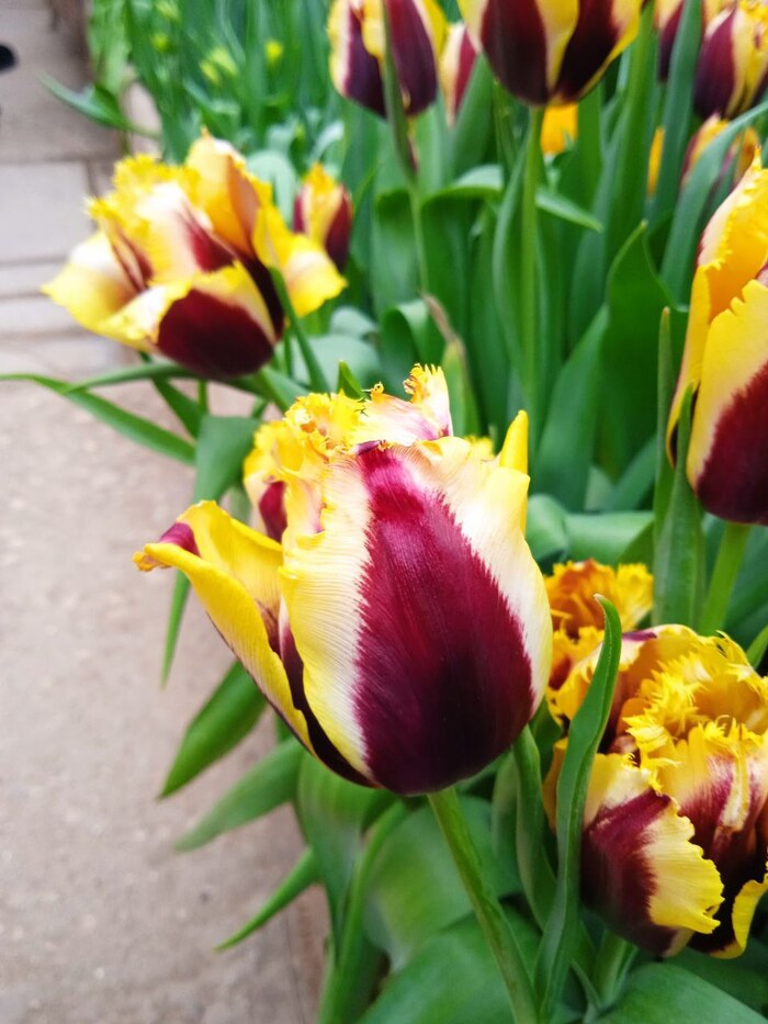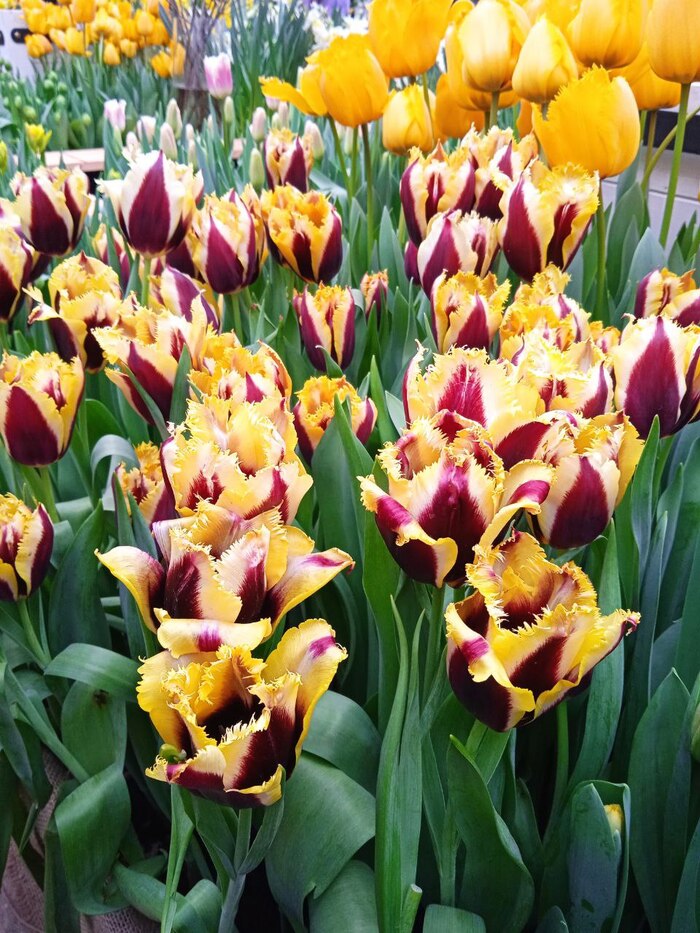 Некоторые тюльпаны меня удивили своей странностью - лепестки были как будто мятые. Не сказала бы, что это очень красиво, но точно уж необычно. Еще впервые увидела там тюльпаны с пёстрыми листьями.