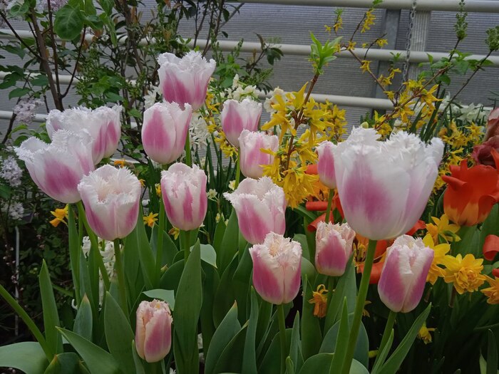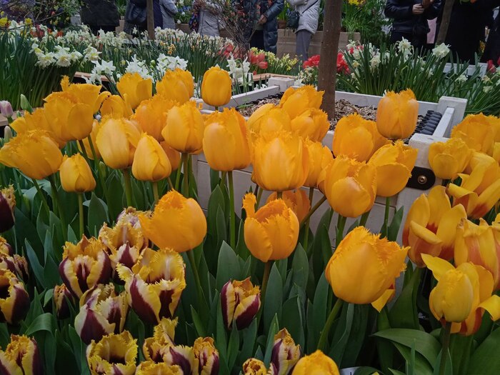В оранжерее выращено множество первоцветов - тюльпаны, нарциссы, крокусы, подснежники, ландыши и даже сирень. Разнообразие сортов тюльпанов поражает воображение. Не шутка, я раньше никогда таких разных красивых сразу и в одном месте не видела.