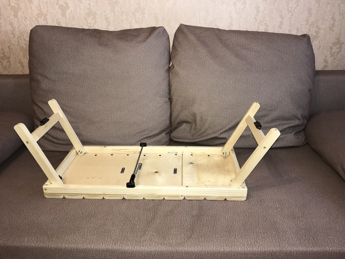 Далее, устанавливаем ножки и петли для откидывания столешницы.