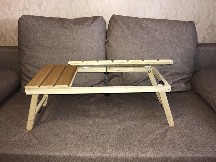 Решил любимой сделать столик для ноутбука(т.к.обещал уже пару лет). Пересмотрел много разных в интернете, и остановился на таком варианте.