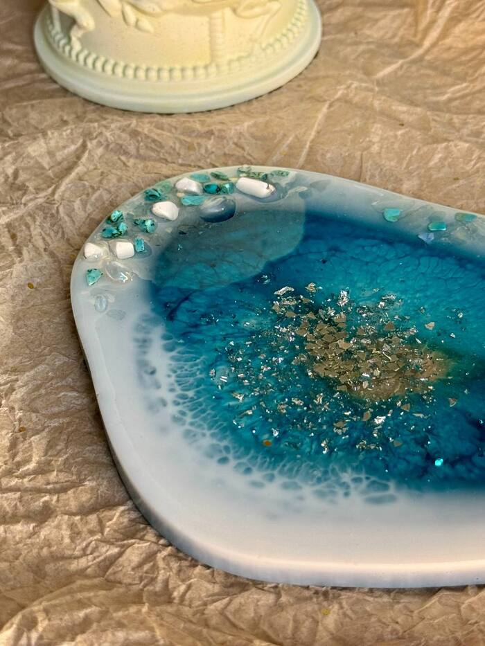 Каждый из них — ручная работа, полностью из эпоксидной смолы, так что повторить идеально такой же оттенок или расположение вкраплений просто невозможно.