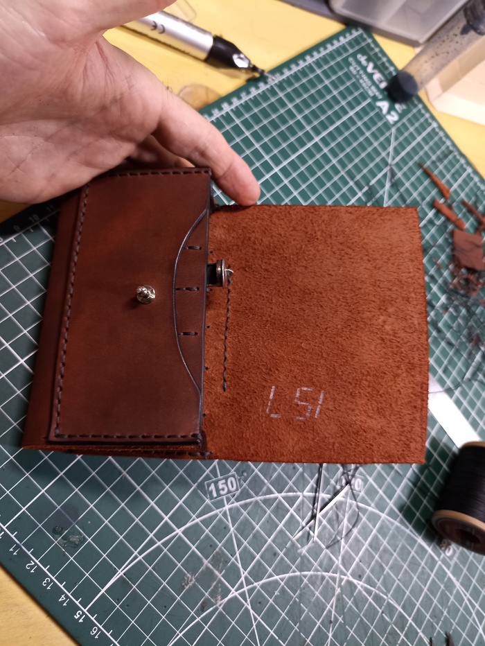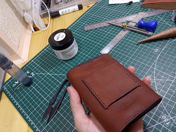 На следующий день имеем вот такое. Обрезаем по кругу, вырезаем клапан, красим, бьем дырки и шьем. Скукота.
