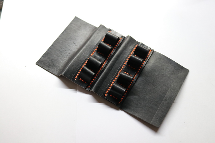 Затем пришил длинную полоску кожи к короткой, получились гнезда для патронов.