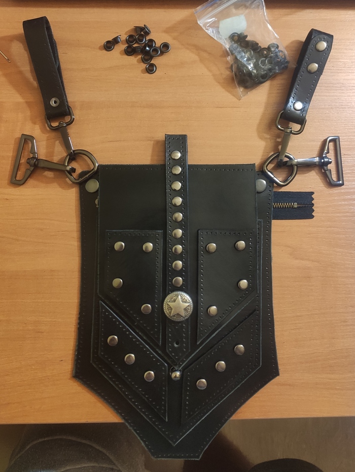 Дальше - печать чертежей, вырезание из куска кожи отдельных элементов, пробивание отверстий инструментом, и итоговая компоновка и выбор фурнитуры -
