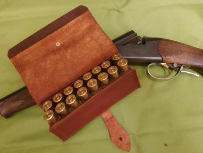Ружьишко было уставшее, пришлось полностью разбирать, мыть, менять дерево, и даже воронение на стволе и коробке - много было царапин и залысин. И вот, у меня на руках очень красивое, лёгенькое ружьишко. Осталась проблема - калибр ружья - 28. А это калибр устаревший, ружья под него выпускают редко, а найти в продаже для него патронташ толковый оказалось невозможно - шьют, в основном, для ходовых 12,16, 20 и 410 калибра. Так как я с кожей работаю недавно, то долго не брался за такую работу. Но потом надоело таскать патроны на охоте в карманах, и я занялся.