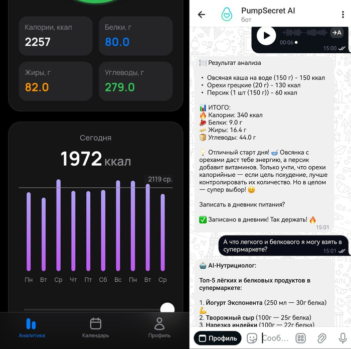 Если вам надоели хаотичные приложения и бесконечные правки в дневнике питания, попробуйте этот способ. Он называется PumpSecret и работает через обычный чат в Telegram. И да, он полностью бесплатный!