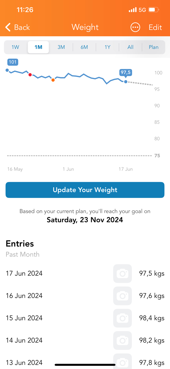 4. Срезать 10-20% от среднего количества калорий за последние 5 дней.