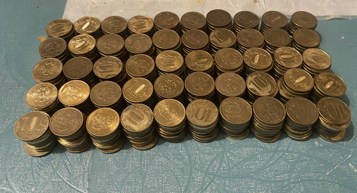 23,13кг, вес одной монеты 5,63г, получается ~4110 монет. Дальше я решил их рассортировать по годам до 2016 включительно и с 2017.