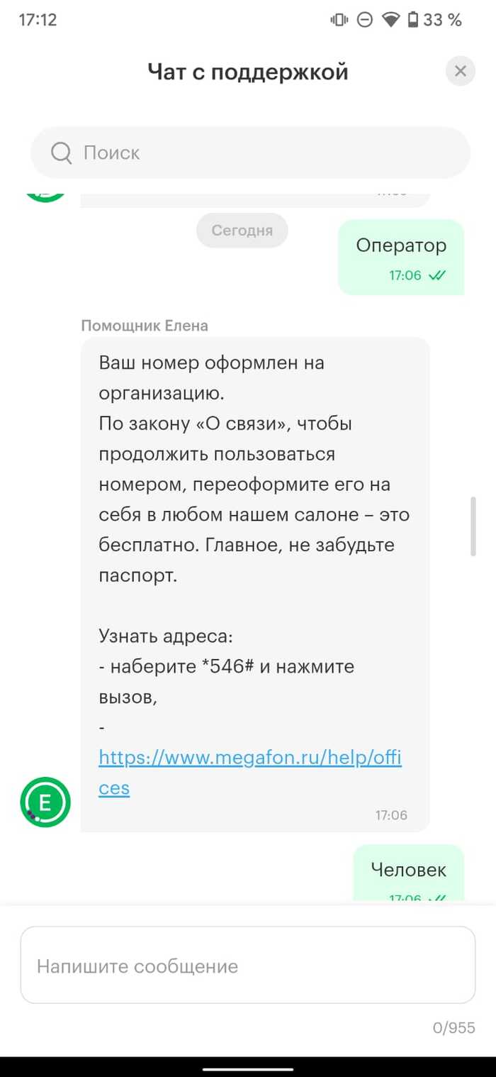 Нахожусь в деревне, что делать, своей машины под рукой нет, бегу к соседу, он бухой, протрезвел едим в город в "офис" мегафон, передаем данные, говорят в течении пару часов все заработает, вернулся обратно, прошло 5, 5 сука часов и ничего, пытаюсь написать в чат и получаю вот это ДНО!