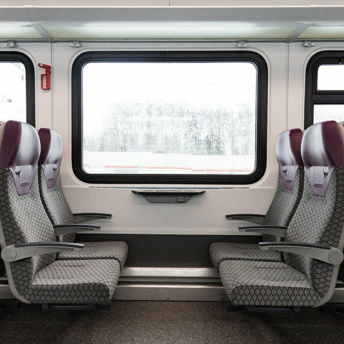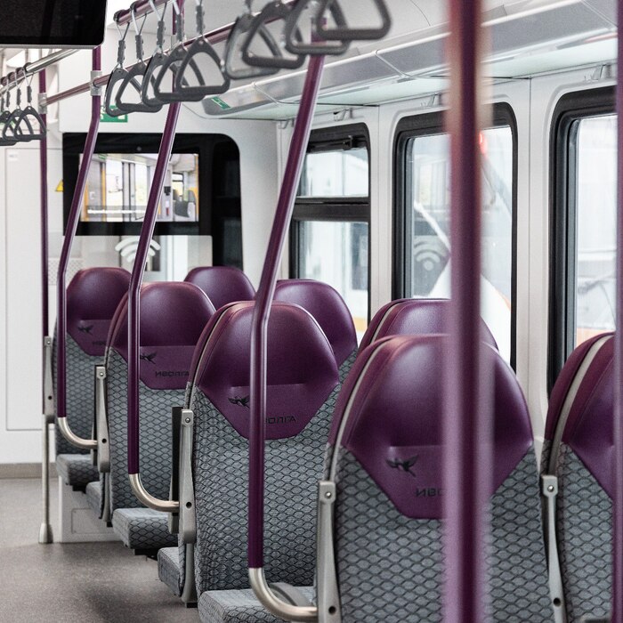 У каждой серии поезда — свой интерьер. Мы тщательно прорабатываем его с производителем, АО «Трансмашхолдинг». Например, в «Иволге 3.0» желтая отделка. А в «Иволге 4.0» ежевичные подголовники и поручни, которые отлично сочетаются с серой обивкой кресел.