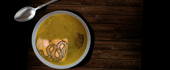 Наконец бульон практически иссяк, и я добрался до куска мяса, это была видимо верхняя часть бедра, приличный такой кусок, хоть и с куриной кожей. Непонятно только, как его так подцепить, чтобы не уронить. Но, все получилось, и мне удалось рывком подсунуть ложку чтобы вытащить его. Улыбнувшись своей удаче я потянул ложку ко рту, прикидывая, как бы лучше откусить. Кусок выглядел аппетитно, несмотря на то, что вареная куриная кожа значительным, толстым пластом свисала чуть вниз, а поднеся ее ближе я разглядел еще что-то прилипшее сверху, вроде петрушки или причудливо изогнутого куска зелени, но и это не мешало мне представить себе нежный вкус куриного бедра.