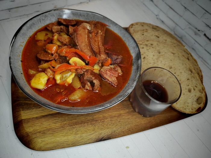 Он же бограчгуляш. Он же bográcsgulyás. Он же гуляш в котелке.