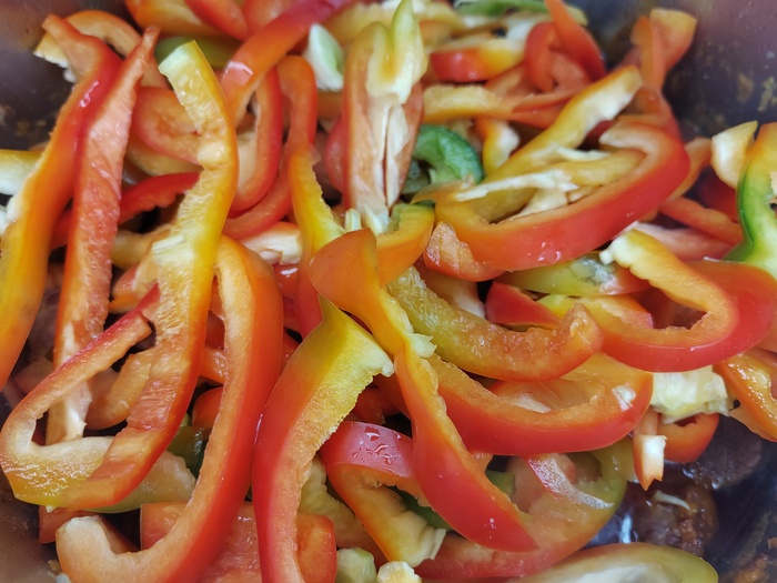 27. Пока тесто отдыхает чистим и шинкуем перец (какой-нибудь соломкой).