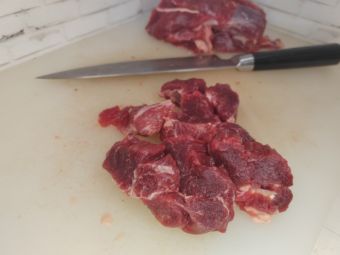 4. Ну и режем всё мясо на ощутимые такие куски.