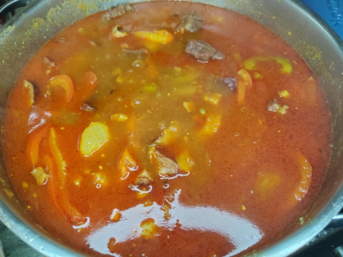 В общем, классическая классика венгерской кухни, готовить которую, как следует из названия, следует в котелке/казане (казан мой, как выяснилось, прописался на даче, так что, бограч у меня получился бограчем по сути, но не по духу). Само собой, на открытом огне. После дня, полного выпаса всякой там копытной живности в Западных Карпатах. Пастушье, в общем, блюдо. Разновидность гуляша (как тоже следует из названия), который, на самом деле, суп. А то, что было в столовых - это тоже венгерская еда, но другая - пёркёльт.