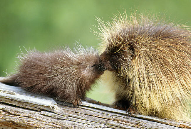 Однако всего через полчаса после рождения иглы у него начинают твердеть, поэтому во время кормления молоком осторожность нужно проявлять и родительнице, и малышу. Происходит это так: самка садится на попу, опираясь на крепкий хвост и подставляет малышу мягкое пузико с сосками, а тот в свою очередь касается мамы только лишённой игл мордашкой. Да и вообще все семейные контакты осуществляются исключительно моськами.