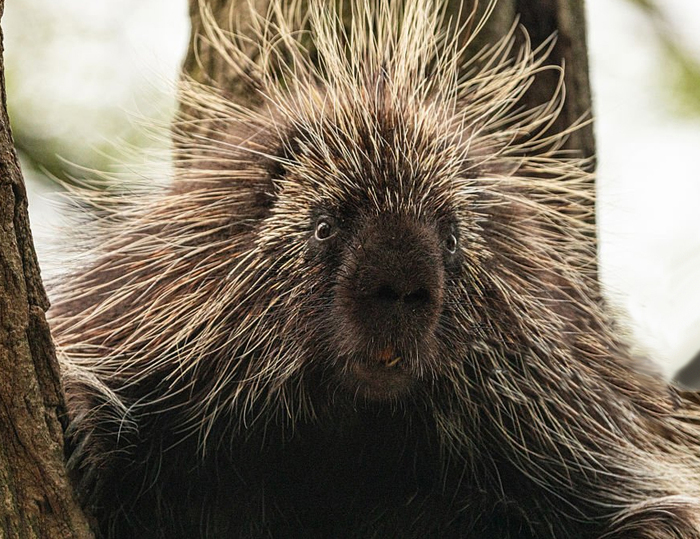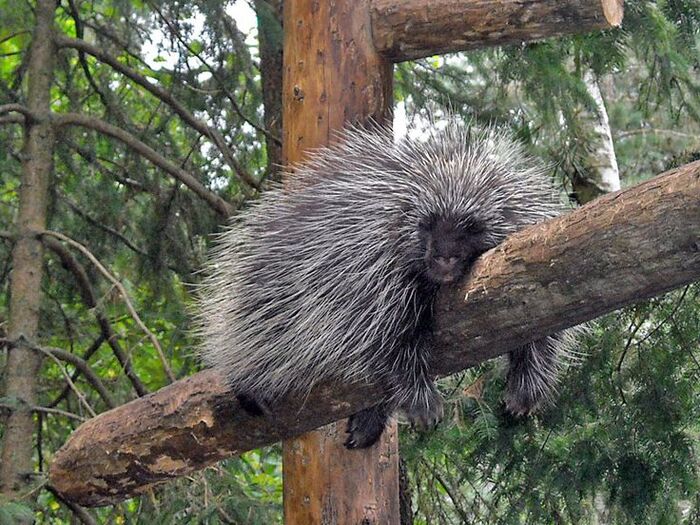 Однако, агрессивное поднятие игл и прочие ужасы – вовсе не первая мера, которую поркупин принимает для спасения своей пушной пятой точки. В случае опасности он в первую очередь стремится забраться на дерево. Да-да, всё верно – кроны деревьев излюбленное место жительства большинства североамериканских дикобразов. Несмотря на кажущуюся неуклюжесть, лазают они исключительно талантливо.