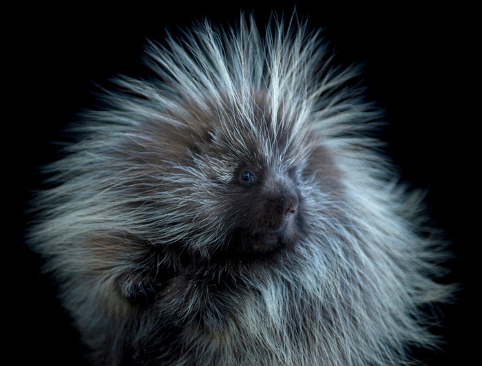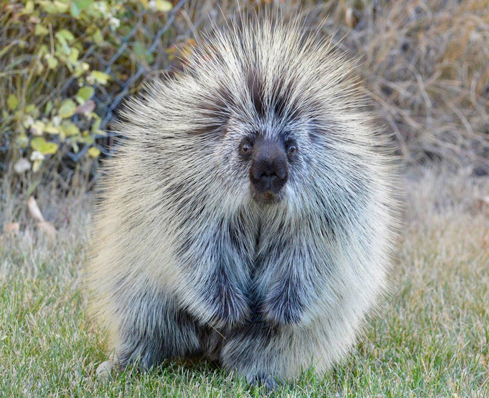 Это поркупин, или североамериканский дикобраз – один из самых крупных грызунов Нового света, достигающий в длину 90 см и набирающий массу до 14 кг. Дикобраз? Но он же уютненький, кругленький и пушистый? Где иглы?
