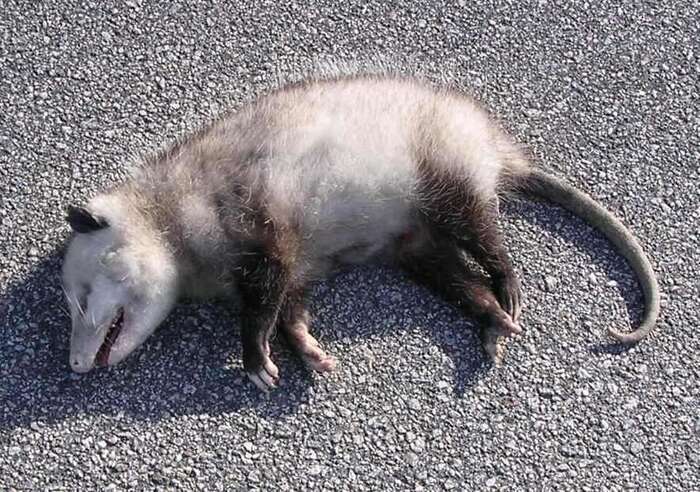 Если исподтишка понаблюдать за виргинским опоссумом, то можно подумать, что медлительность и неуклюжесть делает его лёгкой добычей для хищника, но как бы не так. Бегать быстро он действительно не умеет, разгоняясь максимум до 7,4 км/ч, но есть у него в запасе пара-тройка трюков, помогающих ему выживать даже в самых критических ситуациях.