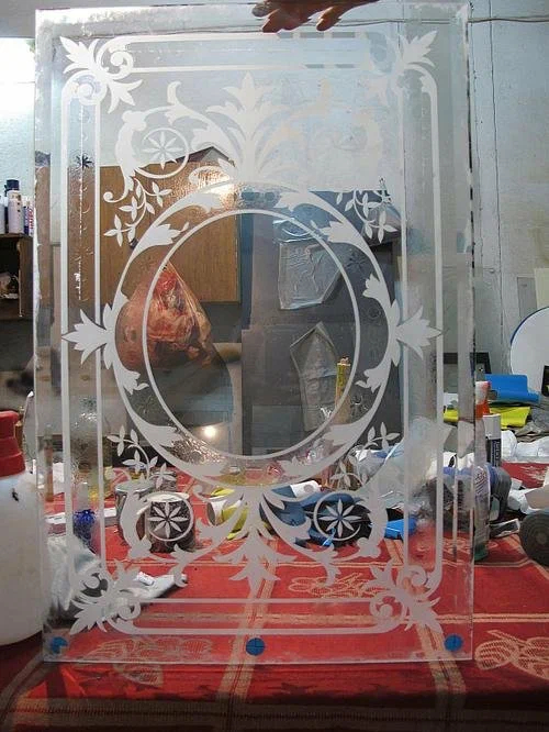 Несколько лет назад я наконец–то осуществил свою давнюю мечту и занялся художественным декорированием стекла. Сначала я думал, что пескоструй (это когда рисунок на стекло наносится песком, подаваемым под большим давлением) — вершина, с высоты которой я смогу взирать на никчёмных людишек, копошащихся на земле и помахивать сверху богу рукой. Пескоструйная камера и всё, что к ней прилагается, было построено нашими с братом руками из найденных на просторах почти заброшенного завода материалов и куплено на тогда ещё не сгоревшей барахолке. Некоторое время понадобилось, чтобы набить руку и получить первые результаты. Казалось бы, нужно успокоиться и наслаждаться результатами, но не тут–то было! Копаясь в интернете, я натыкался на работы, которые восхищали меня своим изяществом и красотой, и которые были сделаны отнюдь не с помощью пескоструйной обработки. Зарываясь всё глубже и глубже в тему, я понял, что методов обработки гораздо больше, чем я думал. Естественно мне захотелось раскрыть их секреты и освоить для дальнейшего использования. Постепенно база знаний увеличивалась, и наконец, я набрался наглости, чтобы повторить работу старинных мастеров.