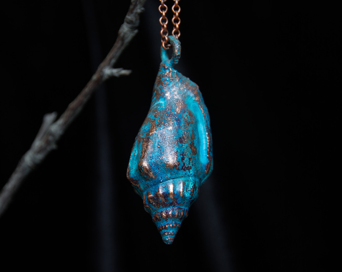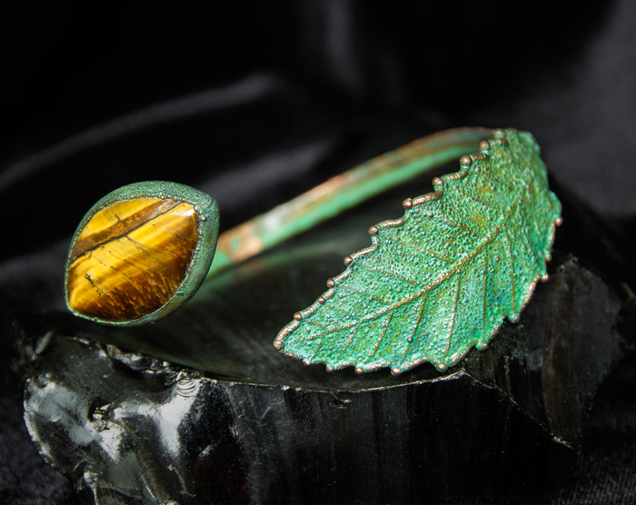 После патинирования (за исключением радужной электропатины) украшение можно еще раз располировать – уже выборочно, подчеркивая текстуру прожилку за прожилкой (да-да, эксплуатация Татки. Впрочем, патинированием тоже она занимается).