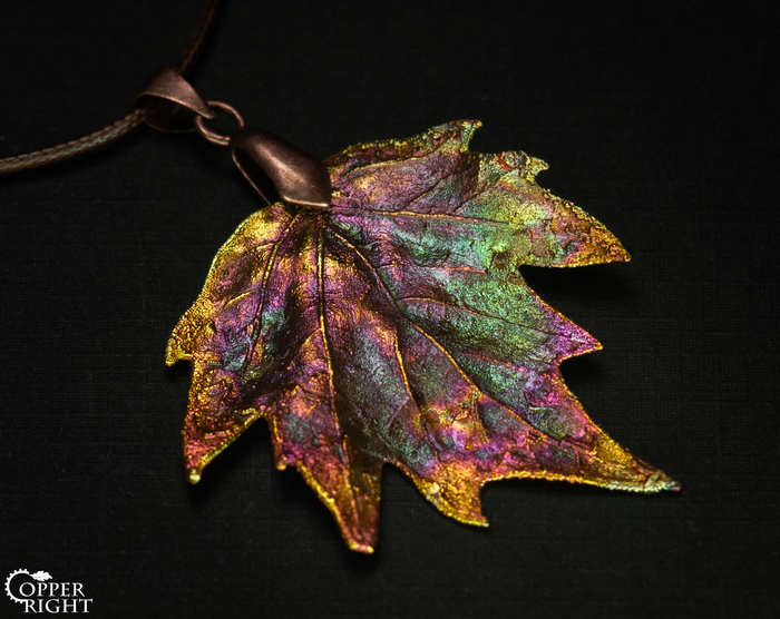 Кстати о разнообразии. Есть еще один вид самодельной патины, который мы активно используем, и который даст фору в разнообразии всем остальным вместе взятым. Это радужная патина. Она электрохимическая, процесс идет в гальванической ванне с электролитом, содержащим NaOH, медный купорос и обычный сахар. За рецепт большое спасибо Марии Черкасовой.